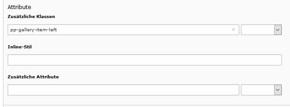 Bei der Platzierung der Bilder überhalb sowie unterhalb des Textes, werden diese horizontal zentriert. Mit der Klass "pp-gallery-item-left" oder "pp-gallery-item-right" können diese am Rand ausgerichtet werden. Mit der Klasse "pp-gallerey-item-shadow" können den Bilder Schatten zugewiesen werden.