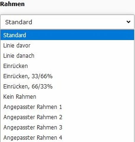 In der Registerkarte "Erscheinungsbild" können einem Inhaltselement verschiedene Rahmen zugewiesen werden.